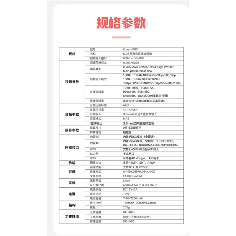 ucastq8s 5G多網(wǎng)聚合直播編碼器HDMI SDI高清視頻微贊微信多平臺(tái)推流設(shè)備 Ucast Q8S